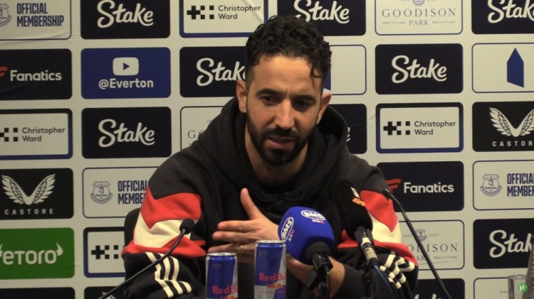 2月23日訊 曼聯(lián)客場2-2戰(zhàn)平埃弗頓,賽后,曼聯(lián)主帥阿莫林出席新聞發(fā)布會。
