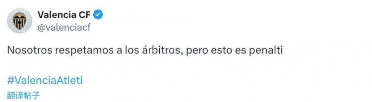 瓦倫西亞官方社媒曬出加蘭手球的視頻,配文:“我們尊重裁判,但這是一個點球?!?/p>