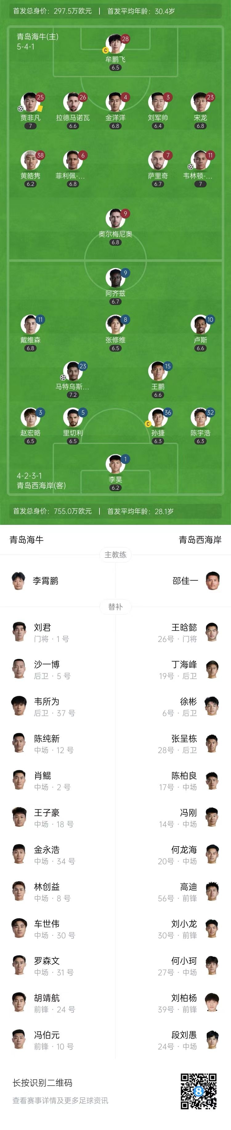 2月23日訊 北京時間2月23日15:30,中超第1輪,青島海牛坐鎮(zhèn)主場迎戰(zhàn)青島西海岸。上半場,席爾瓦世界波破門,劉軍帥解圍失誤,馬特烏斯爭議球破門扳平,賈非凡補射破門將比分超出。上半場比賽結(jié)束,青島海牛暫時1-0領(lǐng)先青島西海岸。