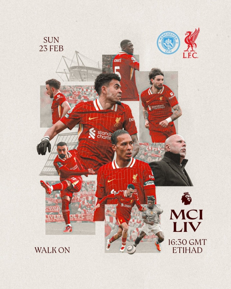 利物浦官方社媒發(fā)布了為此役制作的海報(bào),斯洛特帶領(lǐng)范迪克、阿諾德、薩拉赫、迪亞斯、若塔、索博斯洛伊、科納特出鏡。