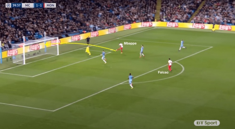 法爾考縱深跑位,為姆巴佩創(chuàng)造出了進(jìn)攻空間,并最終破門得分。