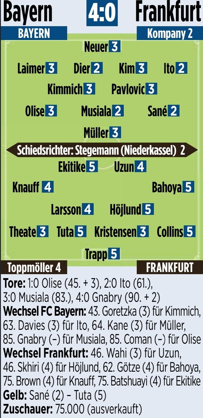 2月24日訊 本輪德甲比賽,拜仁主場4-0戰(zhàn)勝法蘭克福。賽后《圖片報》對于兩隊表現(xiàn)進(jìn)行了評分。