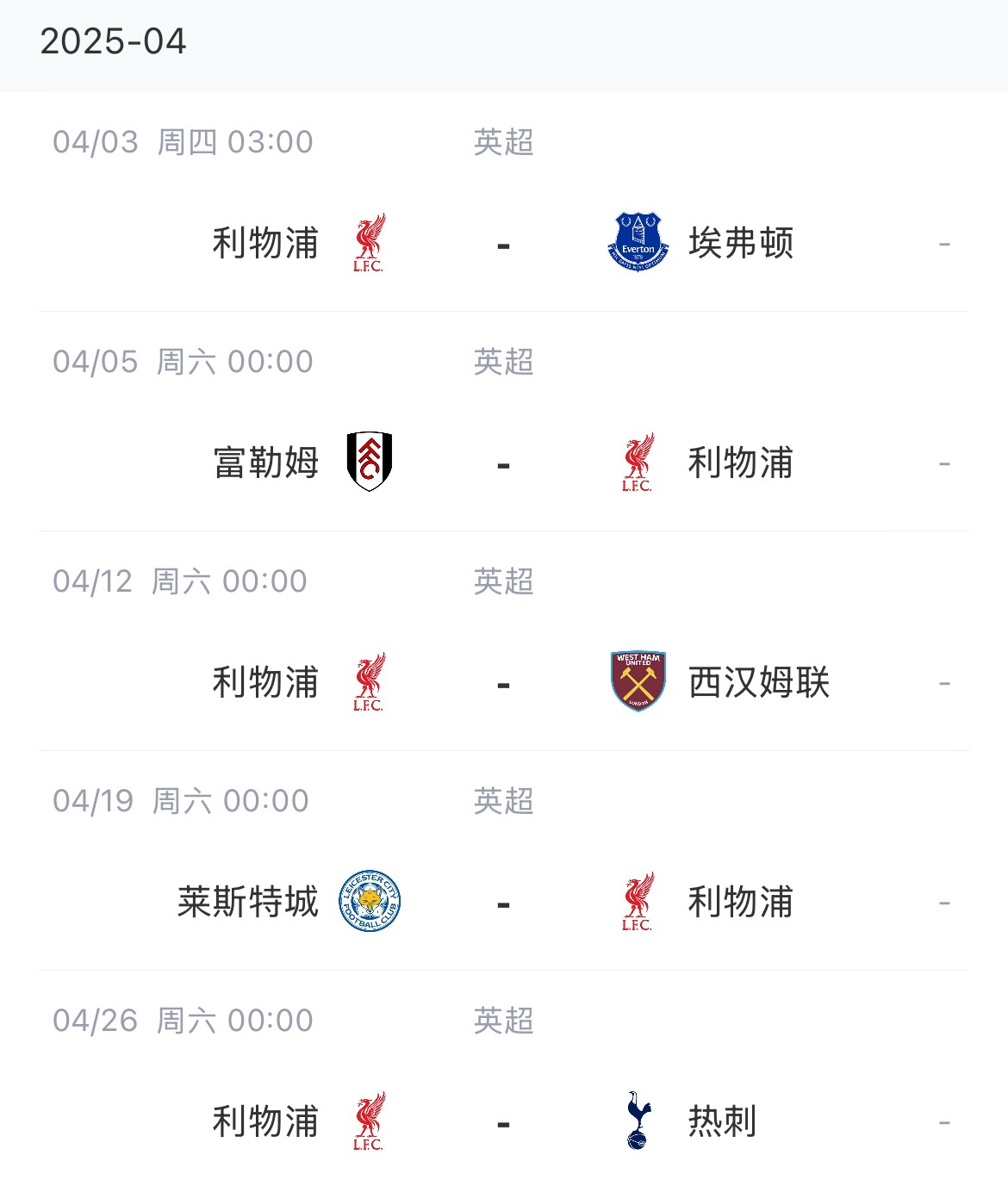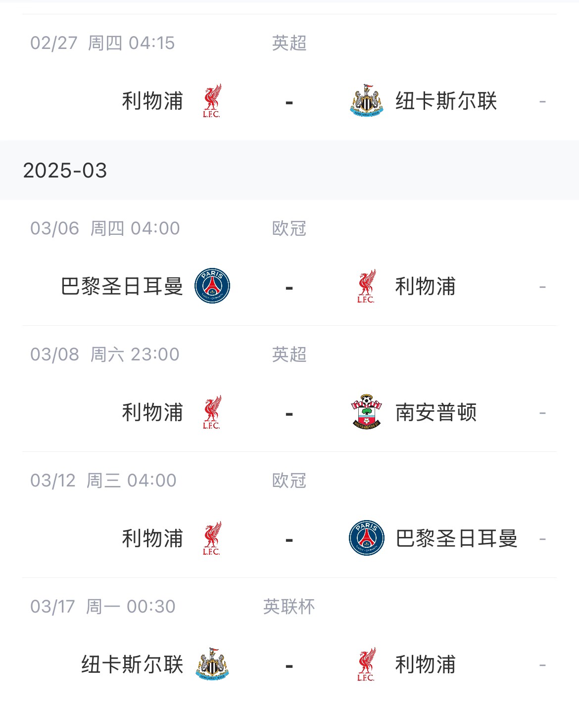 利物浦還剩11輪英超,下輪他們將對陣紐卡,4月底將迎來關(guān)鍵階段,接連對陣熱刺、切爾西、阿森納等隊。此外,利物浦歐冠1/8決賽將對陣巴黎,足總杯他們已被淘汰,聯(lián)賽杯則打進決賽將對陣紐卡。