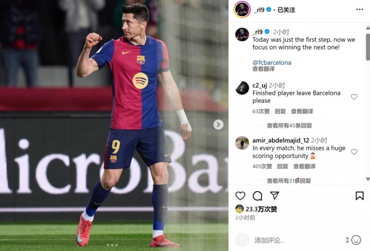 本場(chǎng)比賽萊萬(wàn)替補(bǔ)登場(chǎng)打進(jìn)一球,賽后他也在個(gè)人社媒曬出本場(chǎng)慶祝進(jìn)球照片,配文寫(xiě)道:“今天的比賽只是第一回合,現(xiàn)在我們專(zhuān)注于贏下下一回合!”