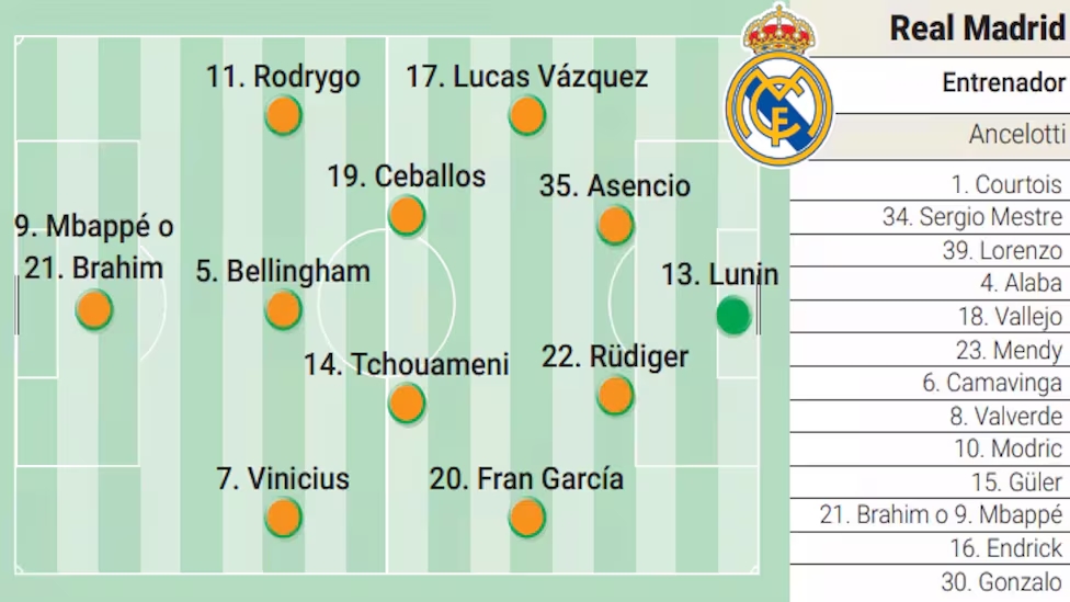 前鋒:羅德里戈、維尼修斯、姆巴佩/布拉欣-迪亞斯