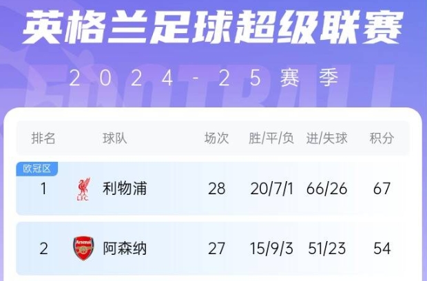 英超第27輪,阿森納客場(chǎng)0-0諾丁漢森林,利物浦2-0紐卡。阿森納目前少賽一場(chǎng)落后利物浦13分,奪冠希望渺茫。