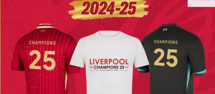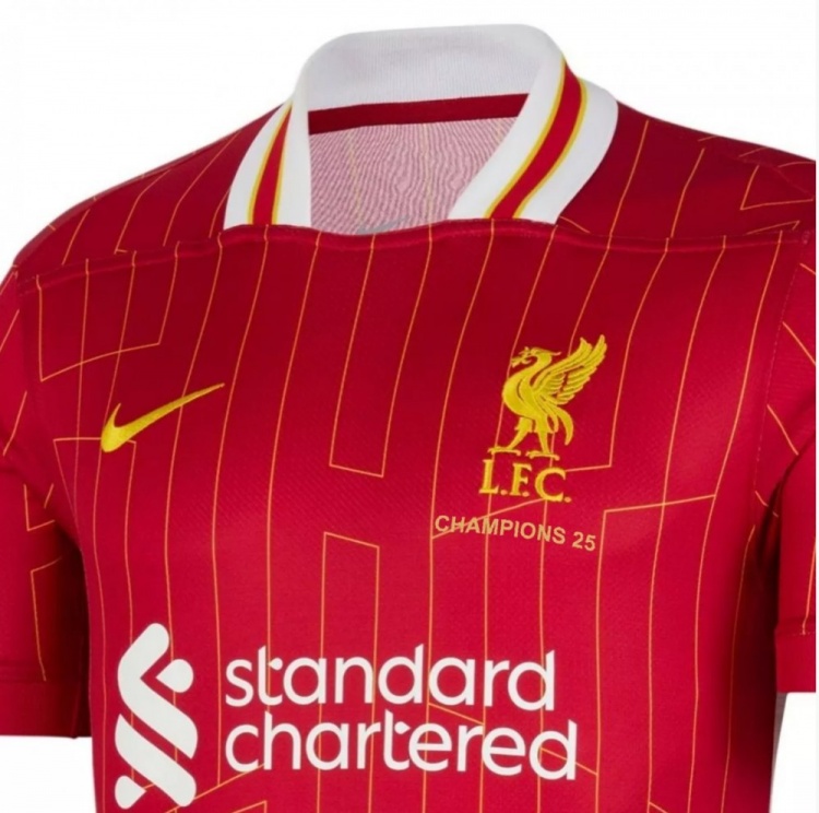 這款t恤成人版售價9.99英鎊,青少年版售價7.99英鎊,現(xiàn)在已經(jīng)可以購買了。利物浦球迷還可以訂購印有“25”字樣的球衣復(fù)制品。它的背面有冠軍和25字樣,而俱樂部的logo周圍也繡著“冠軍 25”字樣。