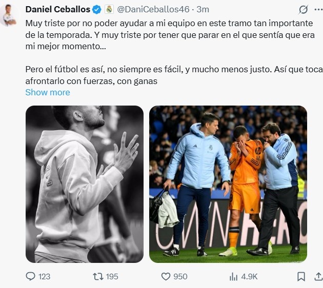 這還沒有結(jié)束,我經(jīng)歷過更糟的,感謝你們的愛?;仡^見,我會比你們想象的更快復(fù)出。????皇馬加油!”