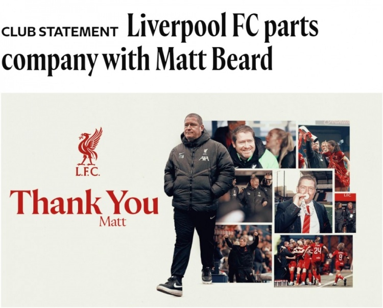 2月27日訊 利物浦俱樂(lè)部官網(wǎng)確認(rèn),馬特-比爾德將立即辭去利物浦女足主教練一職。