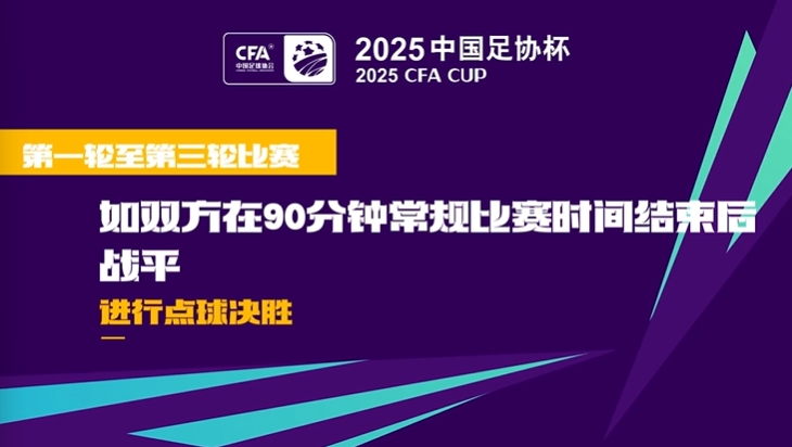 2025中國足協(xié)杯正賽將于3月14日開賽,12月5日結(jié)束,一共進(jìn)行7輪,為主客場單敗淘汰賽制,共64支參賽隊(duì),進(jìn)行63場比賽,第1輪至第3輪若在90分鐘內(nèi)戰(zhàn)平將直接進(jìn)行點(diǎn)球大戰(zhàn),決賽將于12月5日在蘇州奧體中心進(jìn)行。