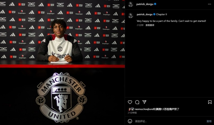 多古寫道:生涯第二章,非常開心加入曼聯(lián)大家庭,迫不及待要開始比賽了!