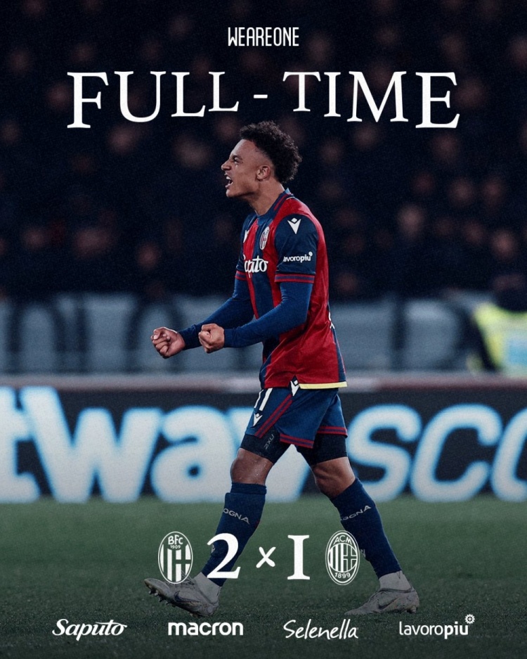 2月28日訊 意甲第9輪補賽,博洛尼亞2-1米蘭。