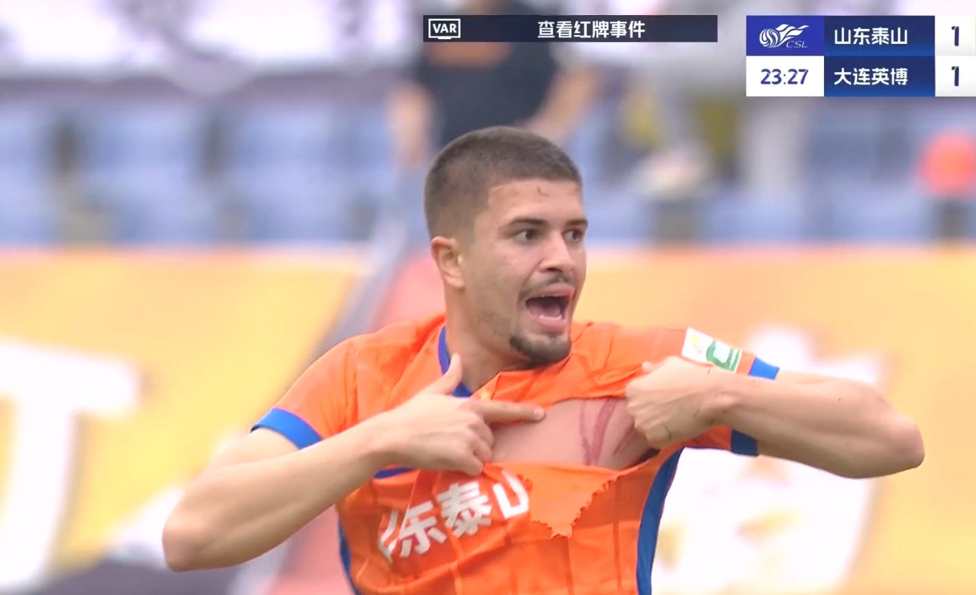02月28日訊 泰山vs大連比賽第25分鐘,卡蘭加蹬踏卡扎爾胸部,后者球衣被蹬爛+拉出血痕!裁判在觀看VAR后,改判黃牌為紅牌,卡蘭加被罰下,英博少打一人! 標(biāo)簽: 足球 中超 中國足球 山東泰山 大連英博