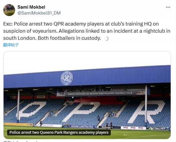 女王公園巡游者俱樂部向《郵報》發(fā)表聲明稱:“女王公園巡游者俱樂部了解到一起涉及兩名學(xué)院球員的事件。這兩名球員正在協(xié)助警方進行調(diào)查。由于這是一項正在進行的調(diào)查,俱樂部目前不會發(fā)表任何進一步的評論。”