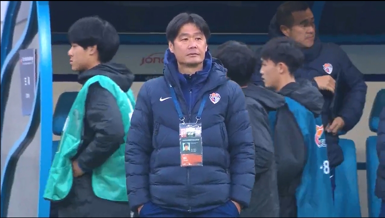 比賽結(jié)束后,轉(zhuǎn)播鏡頭鎖定了海牛新帥李霄鵬。