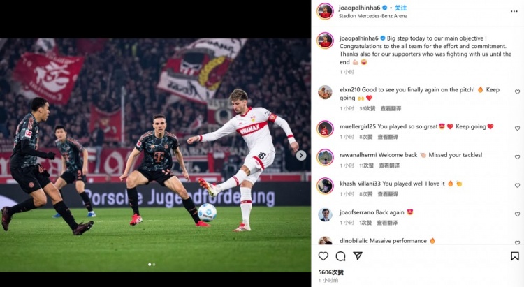 他也在賽后通過社媒曬出自己的比賽照,并配文:“今天我們朝著主要目標邁出了一大步!祝賀全隊的努力奉獻。也感謝我們的球迷們陪同我們一起戰(zhàn)斗到最后????????????”