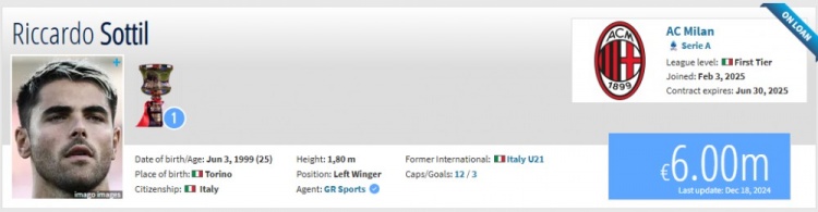 現(xiàn)在,兩名球員的德轉(zhuǎn)頁面所屬球隊都已經(jīng)改為AC米蘭。