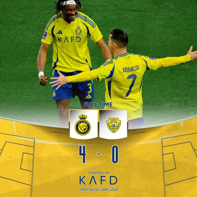 亞冠-利雅得勝利4-0迪拜祈禱距榜首3分 C羅雙響馬內(nèi)造點+獻助攻