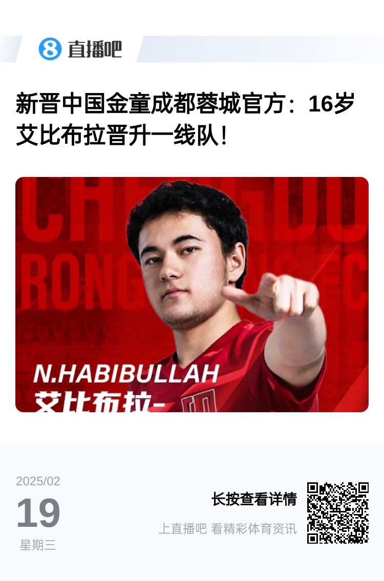 U17國(guó)足陣中,艾比布拉同樣被提拔至成都蓉城一線隊(duì),今晚蓉城對(duì)陣津門虎,16歲的艾比布拉能否上演中超首秀?