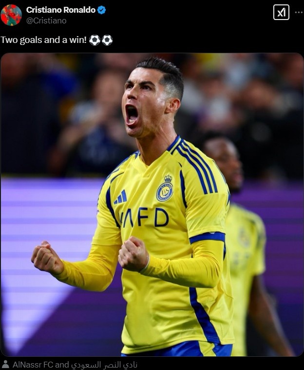 2月4日訊 今天凌晨,C羅梅開二度幫助利雅得勝利在亞冠4-0擊敗迪拜祈禱,賽后這位葡萄牙巨星在推特發(fā)文慶祝。