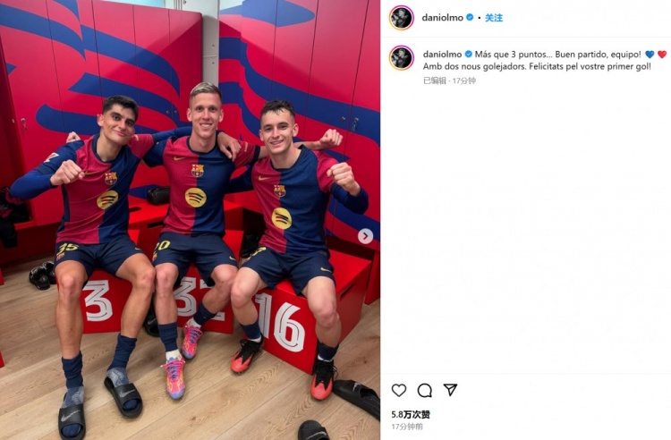 奧爾莫也在賽后曬出和兩位被助攻隊友的合照,并配文:“再添3分……全隊交出頂級表現(xiàn)!和兩位進球者在一起,祝賀你們收獲首球!”