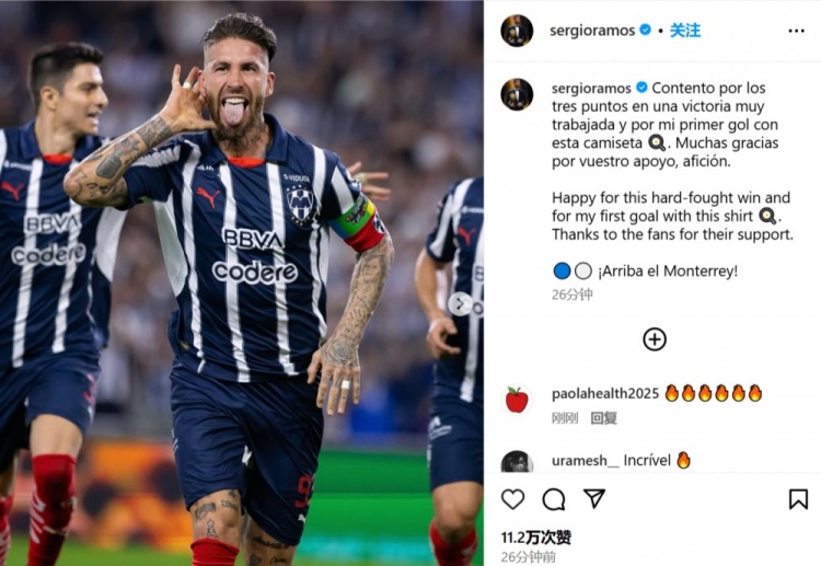 賽后,拉莫斯更新社媒慶祝,他寫道:“為這場艱苦的勝利和穿上這件球衣的第一粒進球感到開心,感謝球迷們的支持?!?/p>