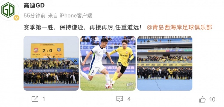 賽后,高迪在社媒曬照并寫道:“賽季第一勝,保持謙遜,再接再厲,任重道遠(yuǎn)!”