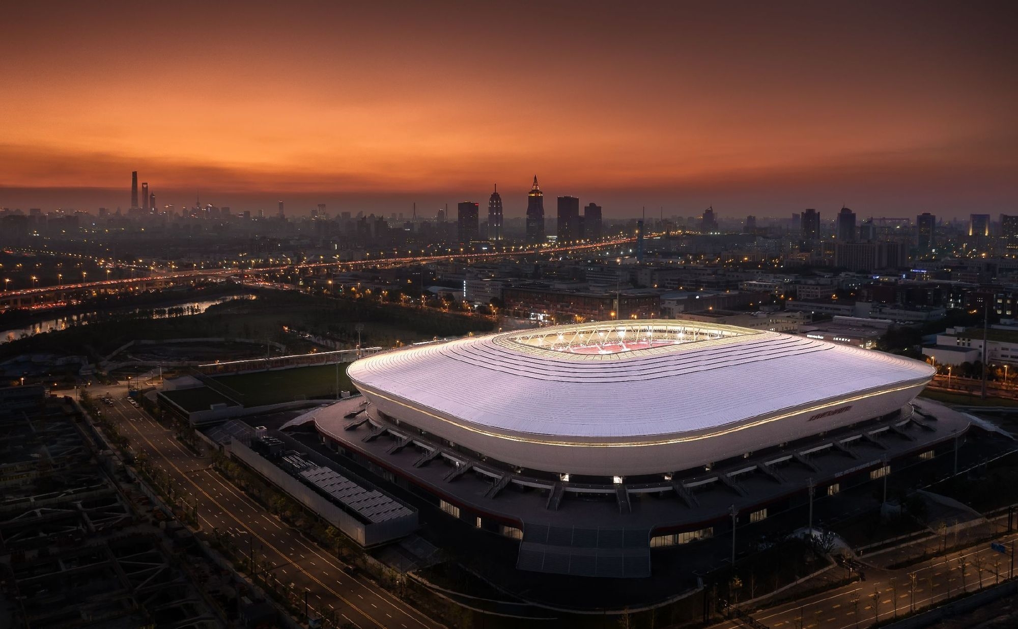 上汽浦東足球場,別稱“白玉碗”,2021年10月建成揭幕,設計容量3.7萬人。