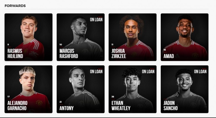 曼聯(lián)本賽季一線隊(duì)鋒線陣容: