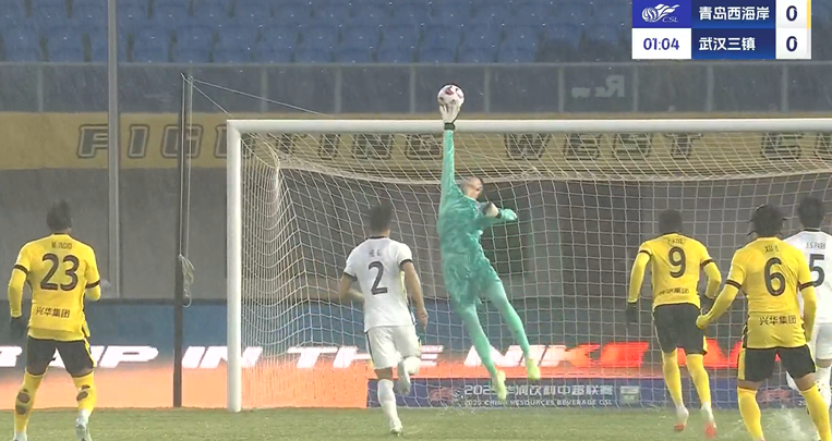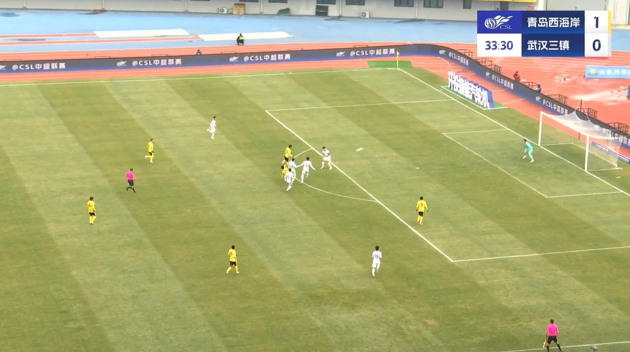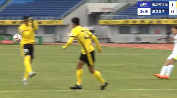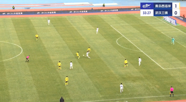 上半場補(bǔ)時3分鐘,青島西海岸1-0武漢三鎮(zhèn)。