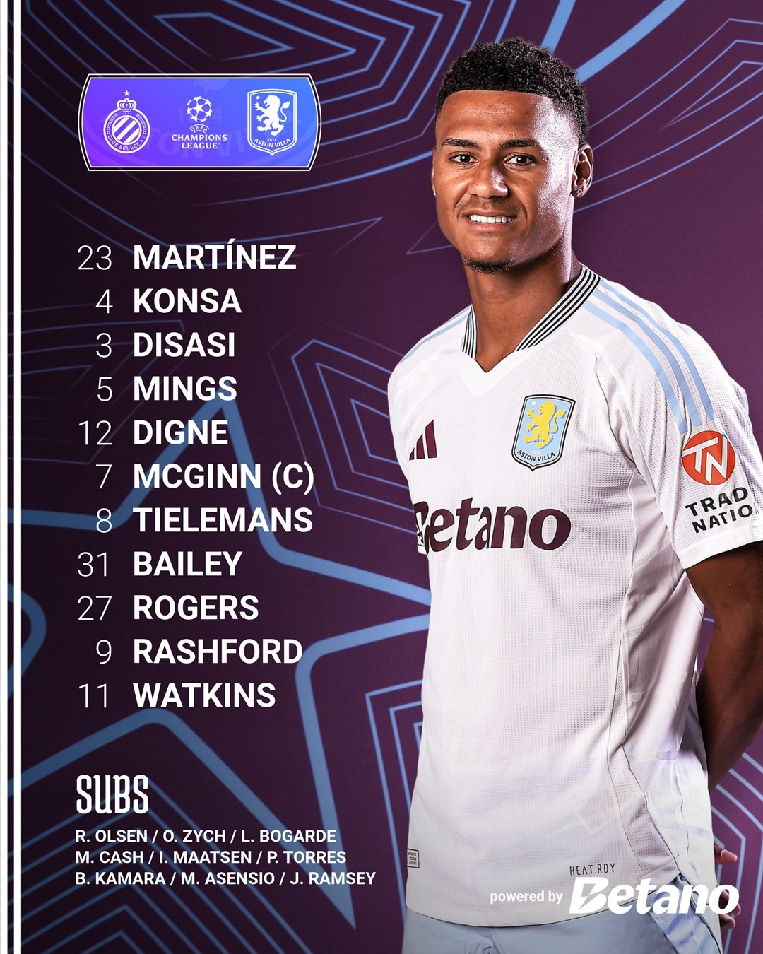 維拉首發(fā):23-馬丁內(nèi)斯、4-孔薩、3-迪薩西、5-明斯、12-迪涅、7-麥金、8-蒂萊曼斯、31-利昂-貝利、27-羅杰斯、9-拉什福德、11-沃特金斯