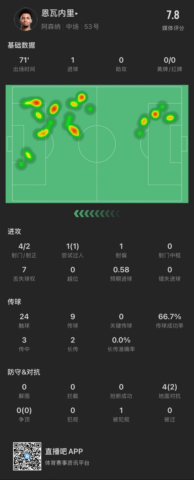 17歲恩瓦內(nèi)里本場主要數(shù)據(jù)↓