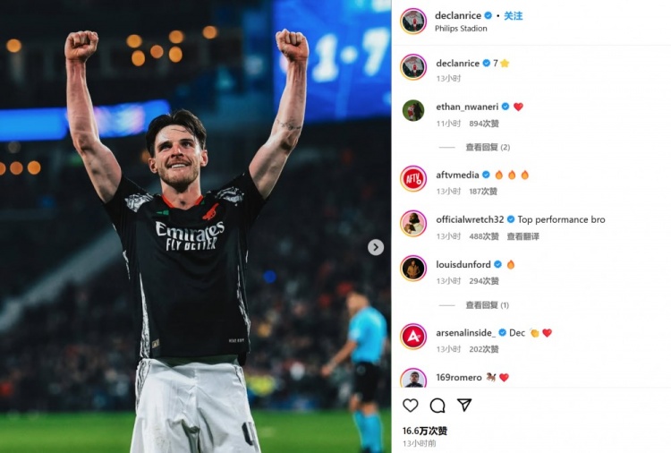 厄德高在本場(chǎng)比賽2射1傳,賴斯也送出1次助攻,兩人都通過社媒曬出自己的慶祝照,并簡(jiǎn)單配文“7”。