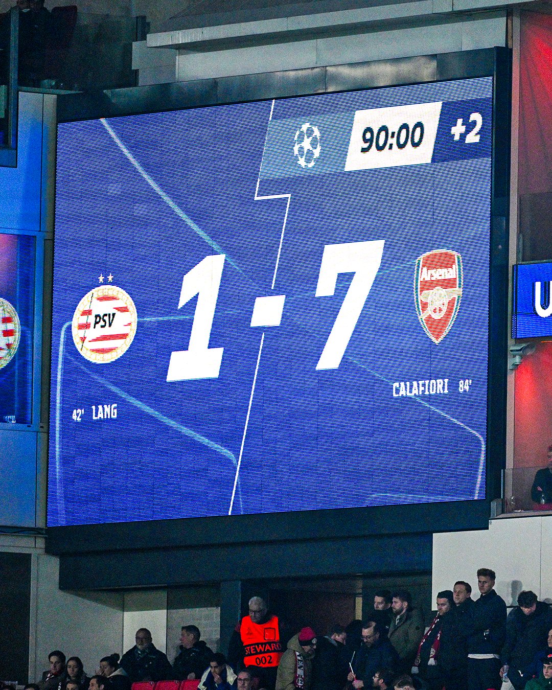 2025年03月05日 巨大優(yōu)勢(shì)!阿森納首回合7-1埃因霍溫 厄德高2射1傳槍手6人建功