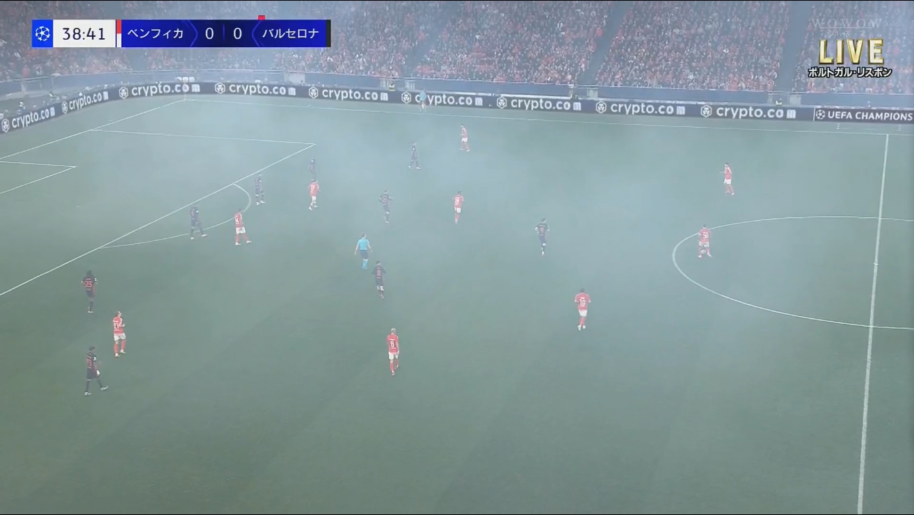 本菲卡球迷燃放煙花,現(xiàn)場(chǎng)煙霧繚繞