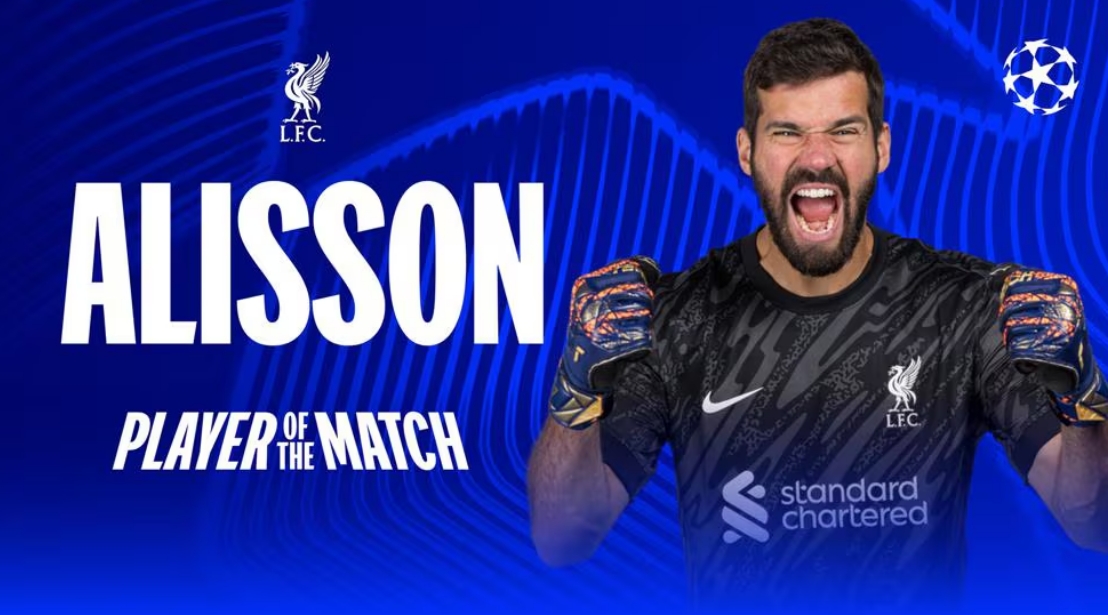 本場(chǎng)比賽阿利森發(fā)揮神勇,全場(chǎng)貢獻(xiàn)9次撲救,賽后他也當(dāng)選歐冠官方評(píng)選出的本場(chǎng)最佳球員。