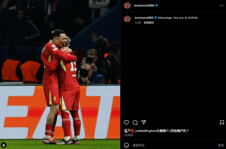 3月7日訊 歐冠1/8決賽首回合中,利物浦1-0絕殺巴黎。賽后,阿諾德更新社媒,慶祝球隊取得這場來之不易的勝利。