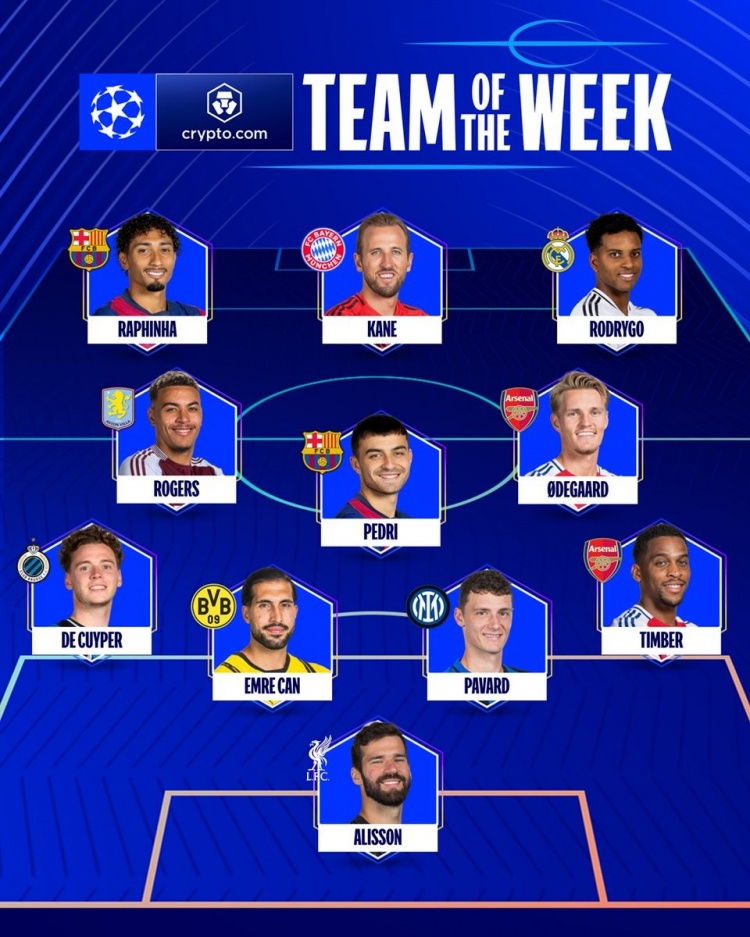 前鋒:拉菲尼亞(巴薩)、凱恩(拜仁)、羅德里戈(皇馬)