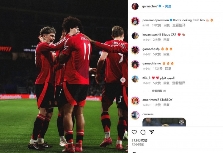 兩人也都在賽后通過社媒曬出比賽照紀(jì)念,但沒有附加文字內(nèi)容。而隊(duì)長馬奎爾則現(xiàn)身齊爾克澤的評論區(qū)并夸獎:“愛了,兄弟!”
