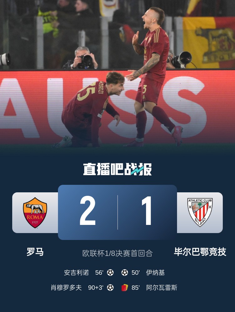 03月07日訊 歐聯(lián)杯1/8決賽首回合,羅馬主場2-1讀秒絕殺畢爾巴鄂競技,占得先機(jī)。