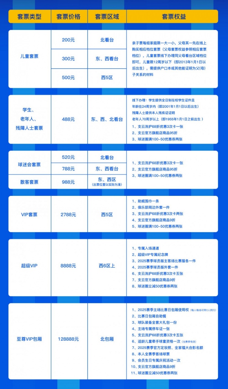 ?二、2025賽季主場(chǎng)套票銷售細(xì)則: