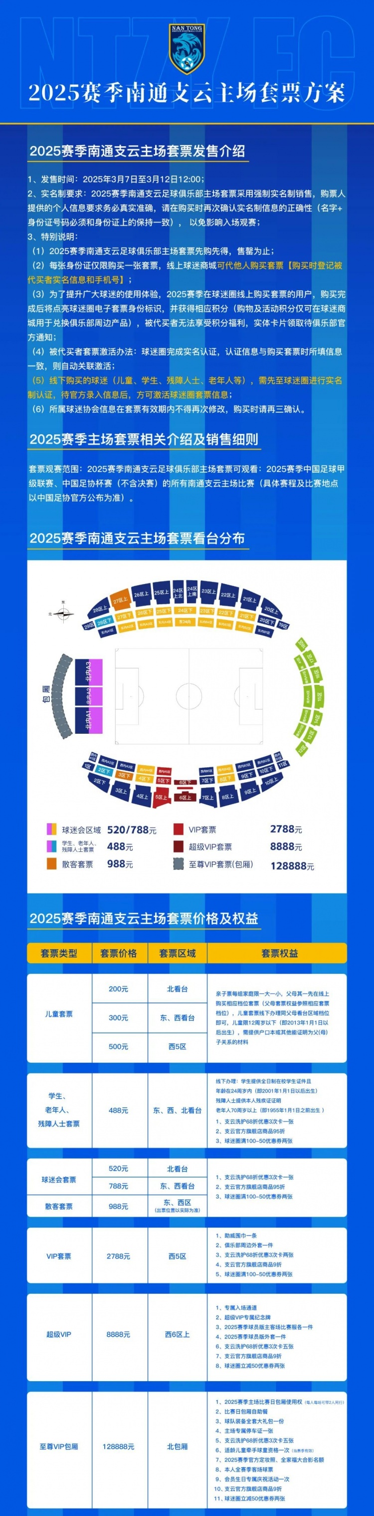 3、2025賽季南通支云主場(chǎng)套票價(jià)格及權(quán)益如下: