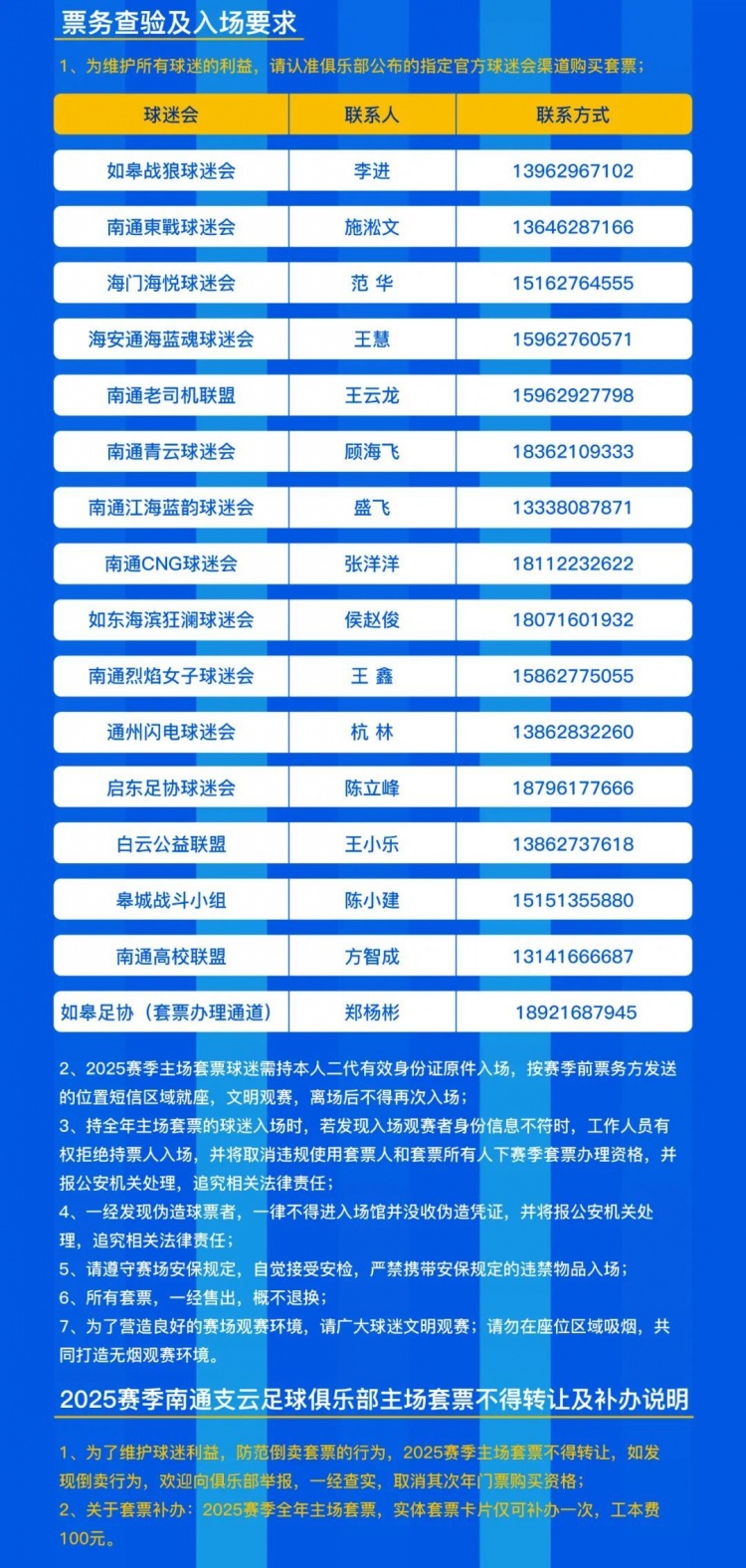 ?五、2025賽季南通支云足球俱樂(lè)部主場(chǎng)套票不得轉(zhuǎn)讓及補(bǔ)辦說(shuō)明: