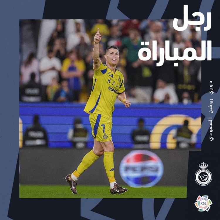 3月8日訊 沙特聯(lián)第24輪,利雅得勝利2-2利雅得青年人。賽后沙特聯(lián)官方宣布,C羅當選全場最佳球員。