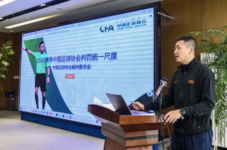 之后,特邀嘉賓、國際級、現(xiàn)役中超聯(lián)賽裁判員張雷圍繞2025賽季職業(yè)聯(lián)賽判罰統(tǒng)一尺度結(jié)合實戰(zhàn)案例進行了深入細(xì)致的宣講,為全體人員上了一堂生動精彩、豐富詳實的規(guī)則教育課。