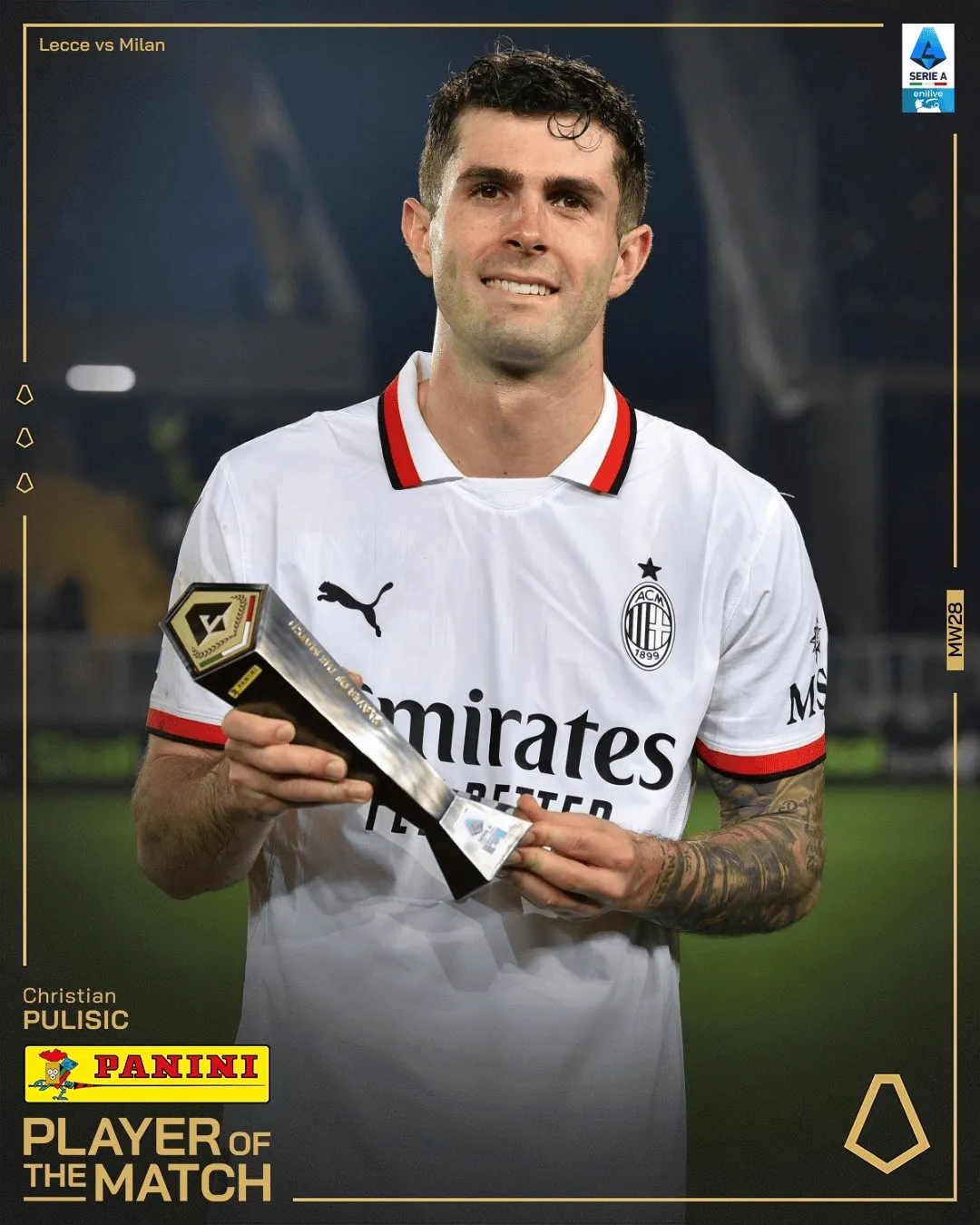 賽后梅開二度的普利西奇也是被官方評選為全場比賽最佳球員。