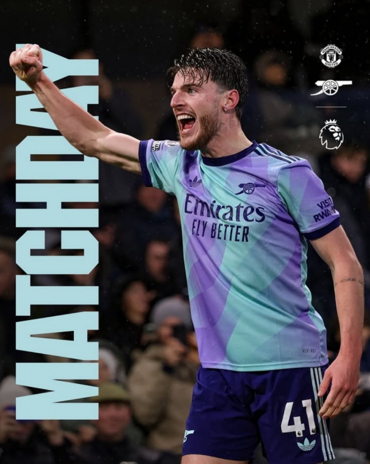 阿森納社媒發(fā)布為此役制作的海報(bào),中場(chǎng)球員賴斯出鏡。