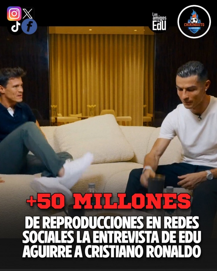 C羅接受西班牙六臺(tái)記者愛德華多-阿吉雷的專訪,西班牙六臺(tái)指出,這次專訪的視頻在各個(gè)社交平臺(tái)的點(diǎn)擊量已經(jīng)突破5000萬。