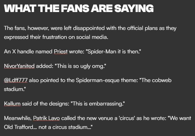 球迷吐槽曼聯(lián)新主場設(shè)計方案:太難看了!擱這整馬戲團(tuán)呢?