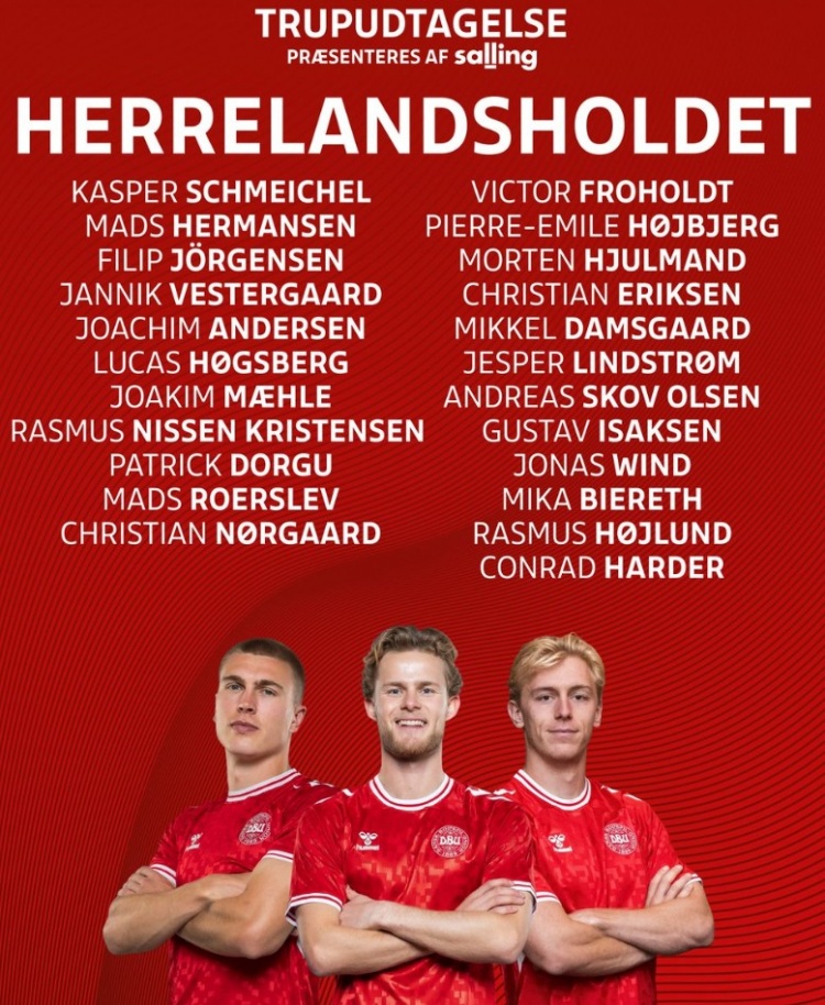 3月11日訊 今天,丹麥足協(xié)在官方社媒公布了新一期國家隊球員名單,霍伊倫領銜,小舒梅切爾、埃里克森在列